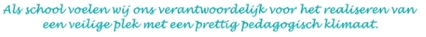 We proberen hierdoor alle vormen van agressie, geweld, seksuele intimidatie, discriminatie en pesten in of binnen de directe omgeving van de school te voorkomen en daar waar zich incidenten voordoen adequate maatregelen te treffen om verdere escalatie te voorkomen. De onderwijsinspectie ziet toe op dit te voeren beleid, omdat sociale veiligheid, naast onze wens, ook een wettelijke zorgplicht is.